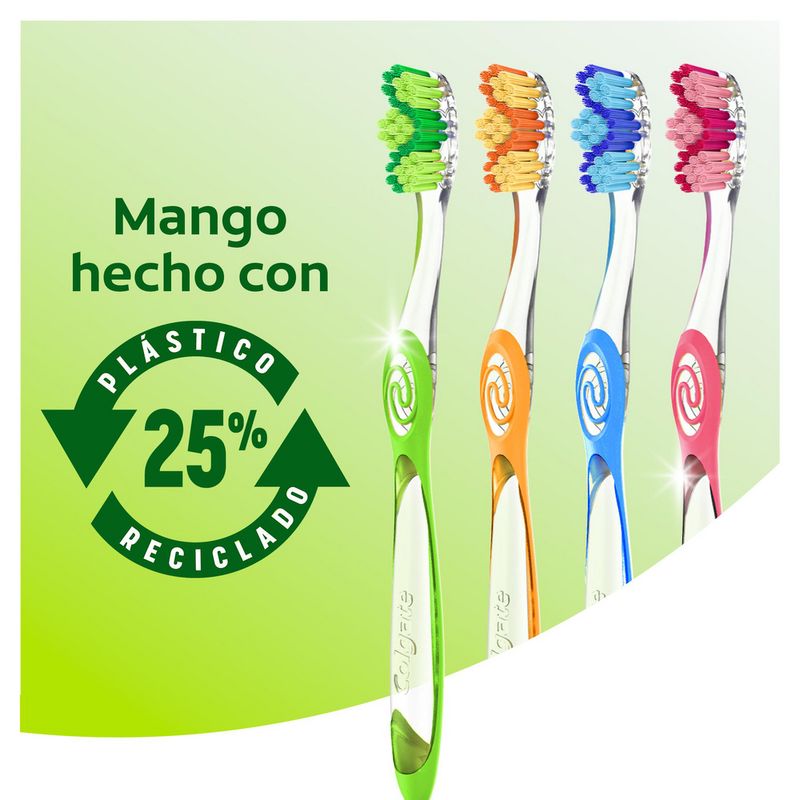 Cepillo de Dientes Colgate Twister Medio brinda una limpieza multi-dimensional. Remueve bacterias. Cepillo de Dientes limpieza multidimensional. Los odontólogos e higienistas recomiendan cambiar el cepillo de dientes cada 3 meses.