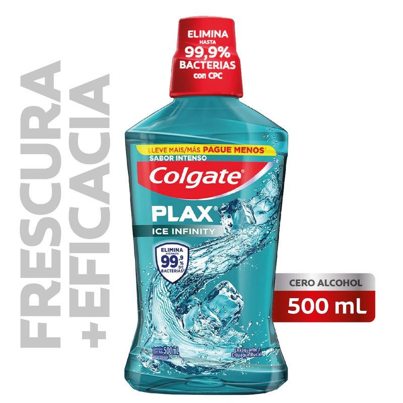 El enjuague bucal Colgate Plax Ice Infinity limpia profundamente proporcionando frescura intensa y aliento fresco y duradero