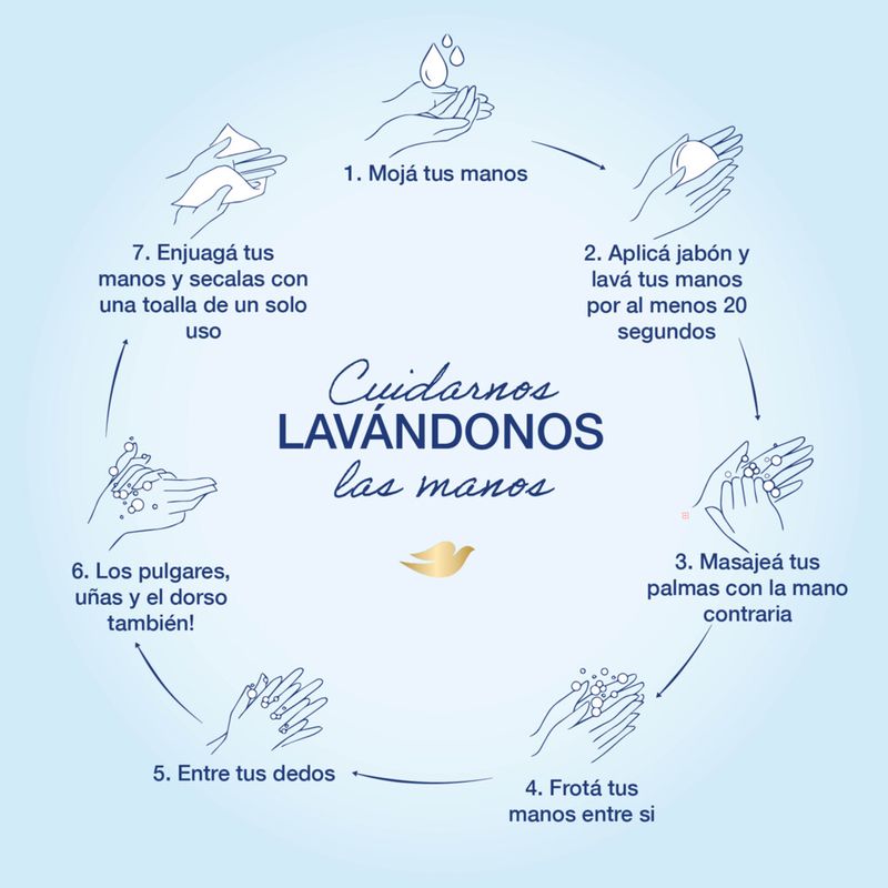 El nuevo Jabón Líquido para manos Dove Antibacterial Cuida & Protege (220 ml) elimina el 99,9% de las bacterias sin resecar tu piel. Dove Antibacterial limpia eficazmente, con el cuidado que solo Dove te puede dar. Su nueva fórmula con +5 ingredientes humectantes, cuida tu piel sin resecarla, protegiendo y humectándola para manos más suaves. Además, su fórmula no tiene parabenos. Sus ingredientes de origen natural humectan tu piel dejándola visiblemente saludable y protegida. Dove Antibacterial elimina eficazmente las bacterias sin resecar la piel, mientras que ayuda a reponer los nutrientes** que pueden perderse durante el excesivo lavado de manos. Con los jabones líquidos Dove tu piel estará más humectada, suave y tersa. ¿Cómo actúa el jabón liquido Dove Antibacterial Cuida & Protege contras las bacterias? 1. A través de su tecnología, suave con la piel?. 2. Con la ayuda de ingredientes naturales que potencian su acción antibacterial. Dove está certificada como Cruelty-free y cuenta con Certificación por PETA, la organización de derechos de los animales más grande del mundo. Dove es la combinación perfecta entre eficacia antibacterial y cuidado. ¿Qué esperas para probarlo? Instrucciones de uso: Mojar el cuerpo o la zona deseada. Enjabonar, masajear y enjuagar con abundante agua. Lavarse las manos correctamente puede ser una de las mejores maneras de cuidarte, y de cuidar a los que querés. Recordá hacerlo con frecuencia. ¡Dejá tu piel suave, humectada y protegida con los jabones Dove!