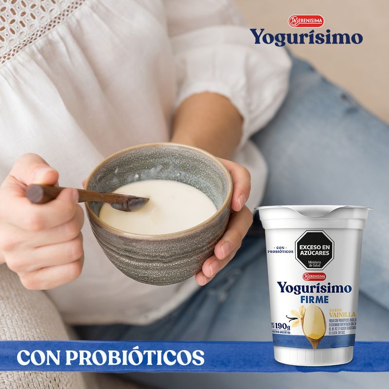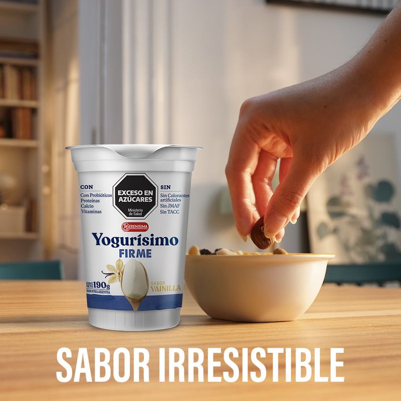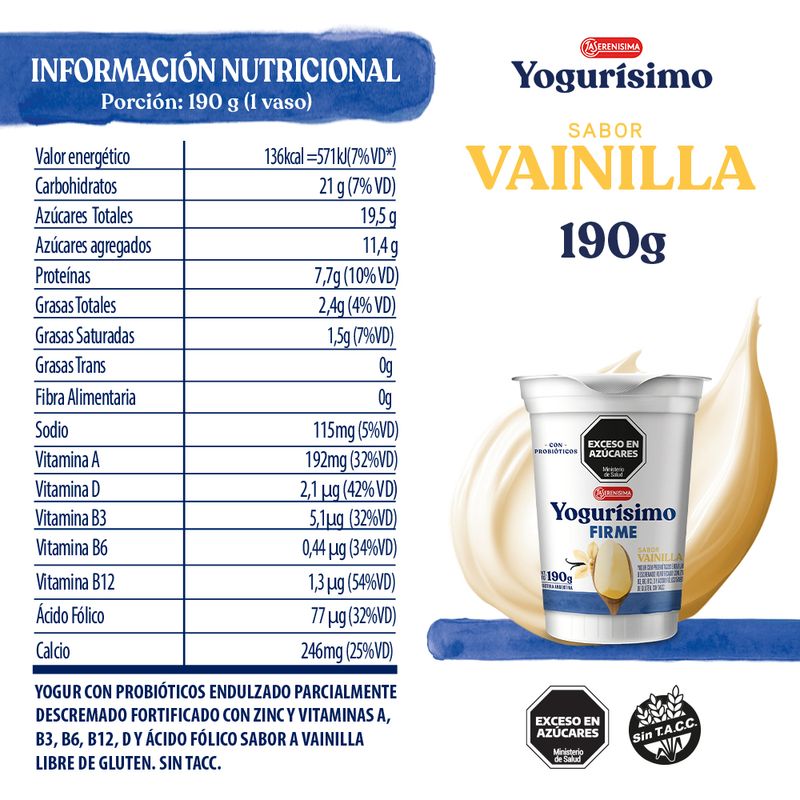YOGURISIMO firme, parcialmente descremado, sabor vainilla.